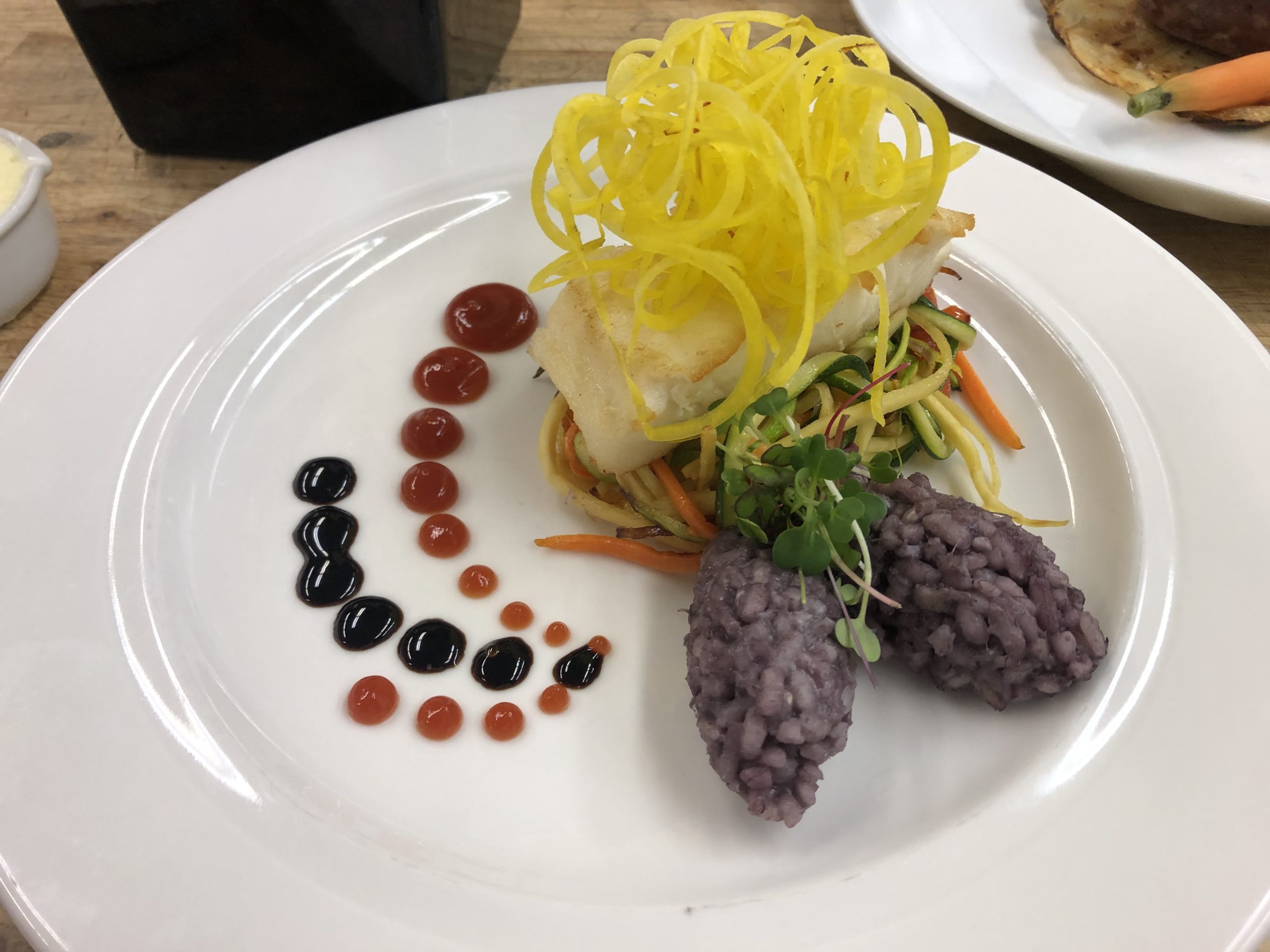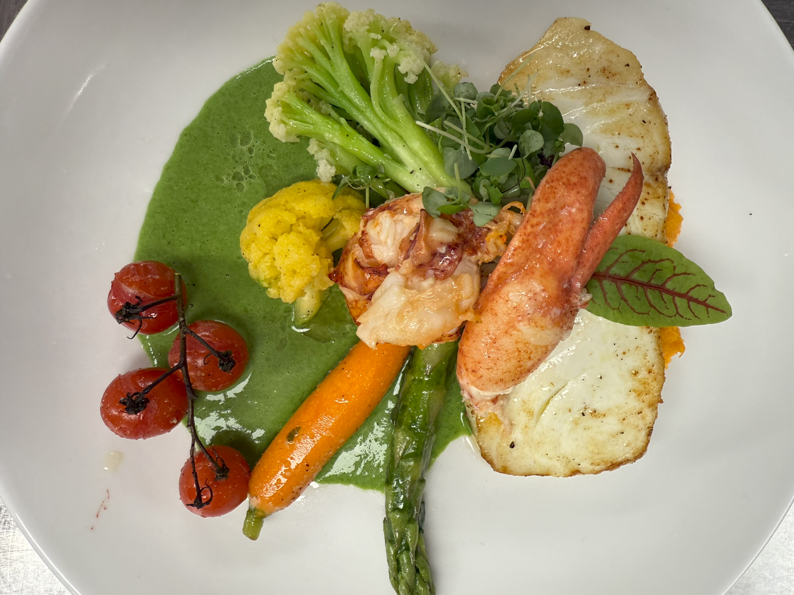 The grape tomato and mozzarella salad looked like art on a plate, bursting with color and balanced by basil oil and arugula grissini. Then came the showstopper: Chilean sea bass with avocado, baked eggplant, and lemongrass carrot sauce. Every bite melted in your mouth, layered with earthy, citrusy, and silky textures.